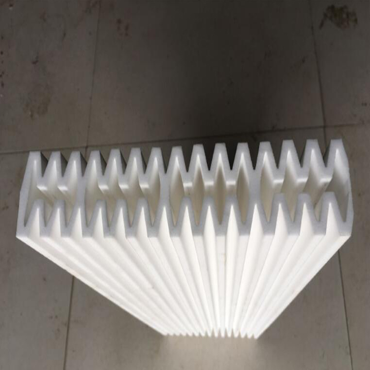 塑燒板的所占空間僅是布袋除塵器的1/3-1/6,并且可以疊加設(shè)計(jì)縮小占地面積。過濾面為波浪形設(shè)計(jì),單塊板過濾面積是相同體積濾袋的2-3倍。